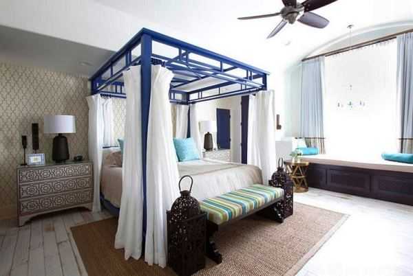 Металл призван охлаждать знойную атмосферу, свойственную спальням с марокканским декором.