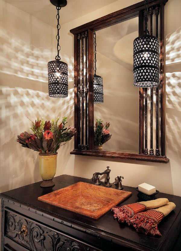 Еще один важный отличительный признак марокканского декора – комбинация древесины с металлом. В такую обстановку отлично впишутся кованые предметы: подсвечники, декоративные решетки, вазы, светильники.