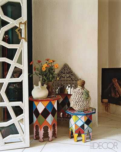 Мебель в марокканском стиле может быть резной, инкрустированной мозаикой, украшенной разнообразными узорами.
