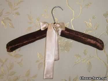 Завязываем бантик на некрасивом месте. Вот и готовы «Шоколадные» плечики для одежды своими руками. Люблю давать вторую жизнь старым, казалось бы, ненужным вещам. Создавайте стильные вещи для дома сами, пусть даже такая мелочь, как тремпель будет украшать ваш интерьер каждый день.