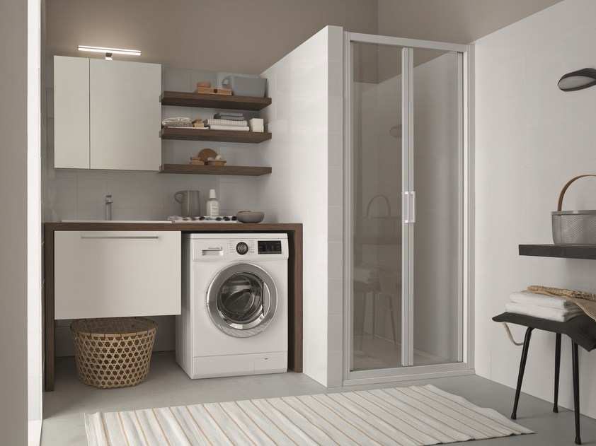 Перегородка — еще один способ скрыть стиральные машины от оставшейся ванной комнаты и четко отделить рабочее помещение прачечной.Разделяющая перегородка должна быть только шириной стиральной машины, обычно глубиной 700-800 мм, что обеспечивает легкий доступ и много рабочего пространства. Вы можете спроектировать открытые стеллажи, индивидуальные шкафы и добавить декор, чтобы еще больше отвлечь внимание от рабочей зоны прачечной.