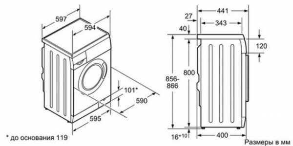 Рассматривая габариты машин, учтите, что замеры даны по верхней крышке. В реале для установки понадобиться место большее по глубине. Добавится несколько сантиметров на торчащие сзади выводы и подключение шлангов. Также на некоторое расстояние выступает дверка. Это надо иметь в виду.
