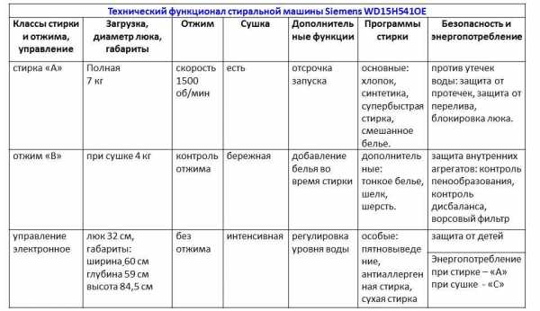 Взвесив все основные технические показатели, первое место нашего рейтинга независимые эксперты отдали автоматической стиральной машине с горизонтальной загрузкой Siemens WD15H541OE. Для наглядности представим ее характеристики в виде таблицы.