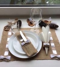 - Раскладывают приборы и тарелки напротив каждого стула.