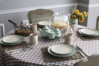А декоративности добавляйте текстилем на столе и «схемой» выкладки тарелок и приборов.