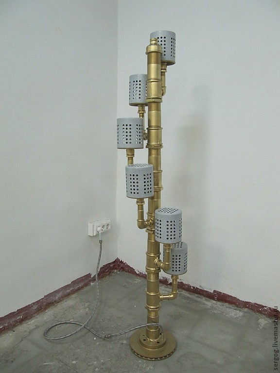 Я действительно питаю слабость к лампам. Я брожу по комиссионным магазинам, восхищаясь ими — чем страннее, тем лучше — и останавливаюсь на страницах каталогов с крутыми светильниками. Сегодня я рад поделиться гостевым мастер-классом о том, как сделать торшер в индустриальном стиле своими руками из труб. Поставьте этого малыша перед открытой кирпичной стеной и потягивайте коктейль, любуясь своей работой.