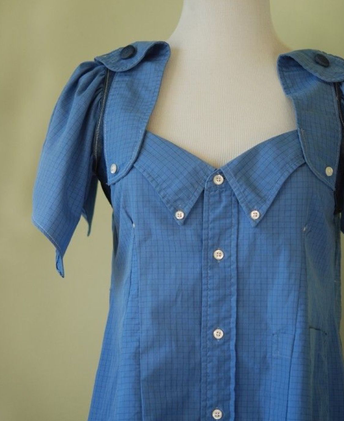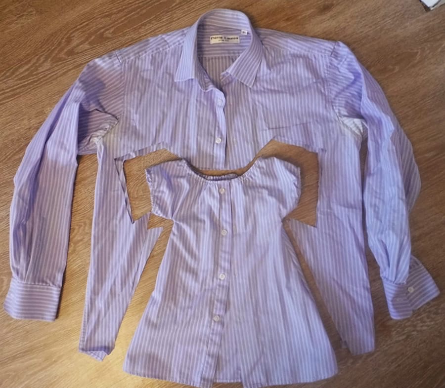 Как вариант, можно использовать наоборот верхнюю часть рубашки, вместе с воротничком и кармашком.