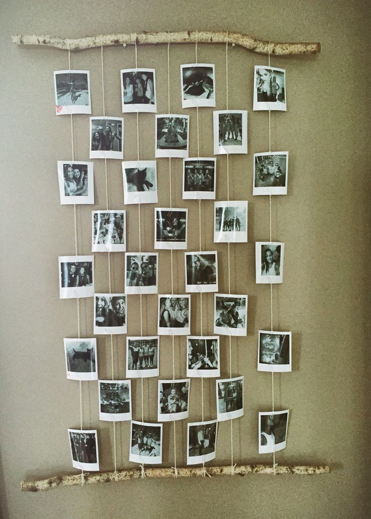 Если захочется креатива, можно разместить фотографии просто и оригинально. Закрепите на стене бельевую веревку в комнате и прикрепите фото при помощи прищепок.