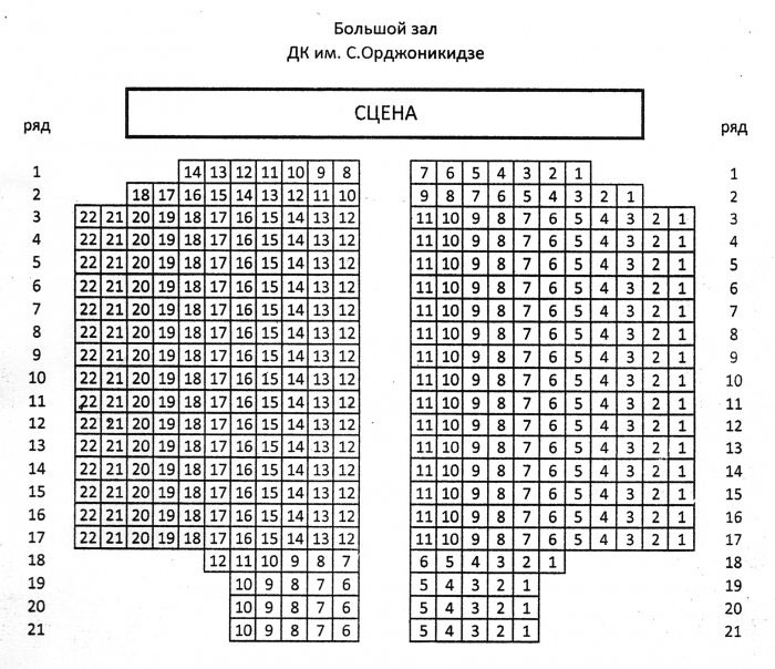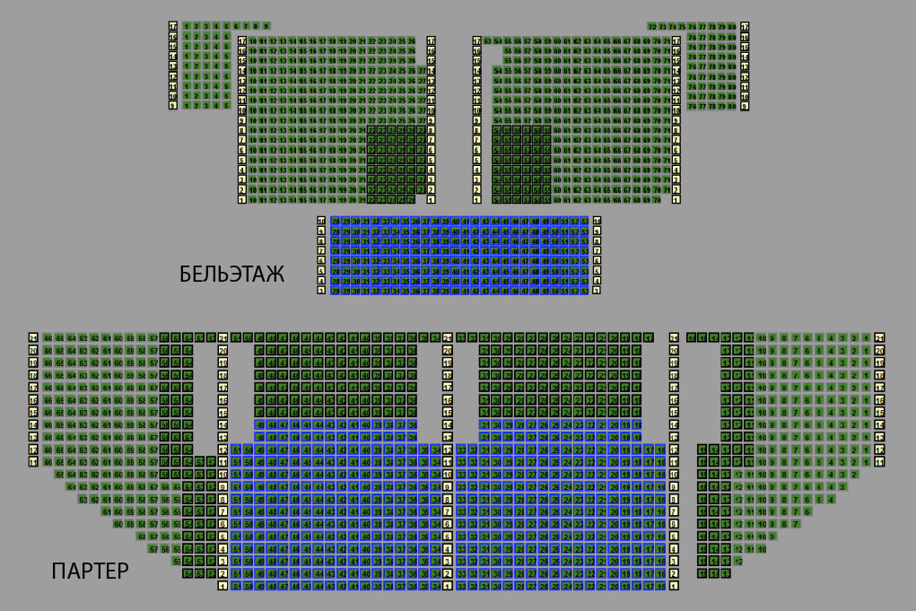 Вместительность зала — 1040 мест.