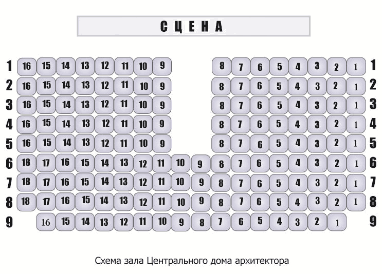 гардеробы, уютные фойе, информационные стенды, буфеты и кафе.