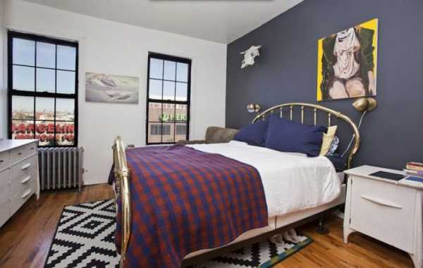 Часто интерьер спальни в синих тонах применяется в стиле лофт.