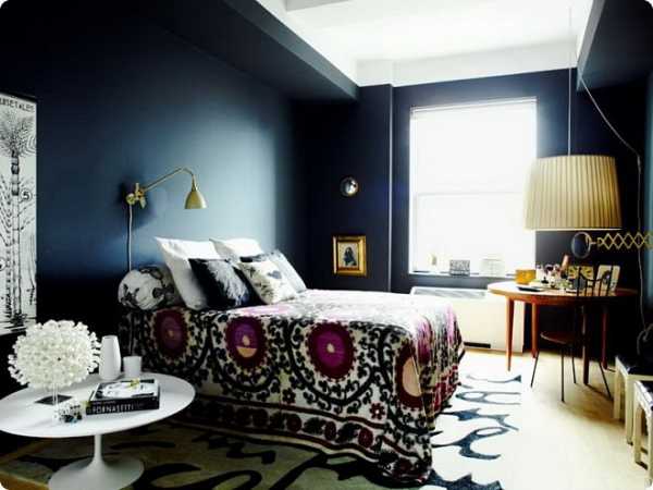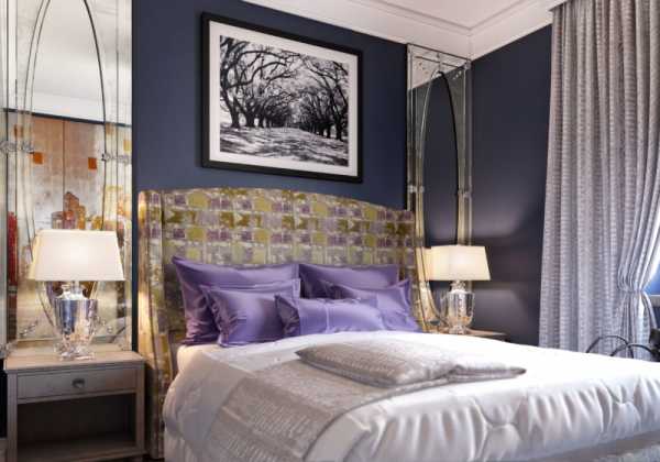 тёмно-синий цвет в спальне наделяет комнату некой мистичностью