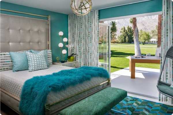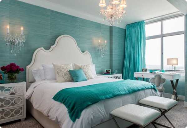 Комбинирование с различными тонами позволяет сделать помещение ярким, необычным, но и сдержанным. Чаще всего дизайн в бирюзовом отливе дополняют стильными акцентами – синей вазой, декоративными подушками цвета фуксии.