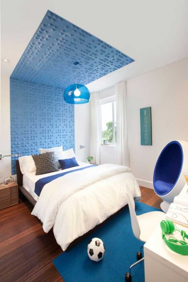 Если захочется сделать синим цветом потолок, то лучше отдать предпочтение натяжным потолкам, это зрительно сделает комнату выше.