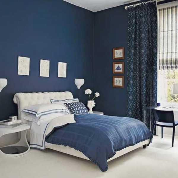 Для больших комнат, принято выбирать насыщено темные оттенки этого цвета. Он помогает грамотно сократить весь интерьер, добавив в него частичку уюта. Темно – синяя спальня подходит для людей ведущих активных образ жизни. Он заряжает их необходимой энергией.
