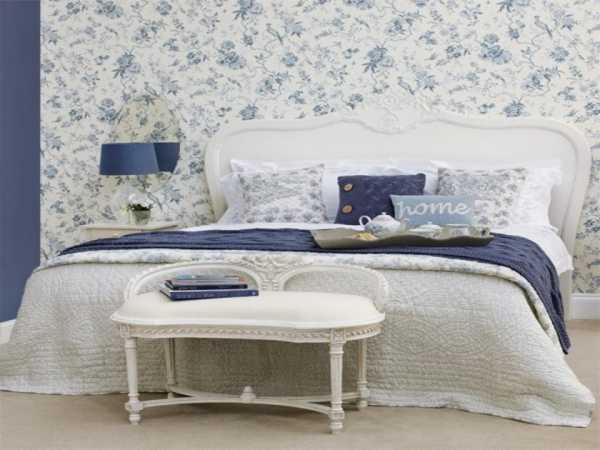 В сочетании с классическим белым цветом синие обои в спальню создадут нотки скандинавского или средиземноморского стиля. Такой цветовой спектр подчеркнет изысканность, увеличит пространство, создаст атмосферу легкости, будет ассоциироваться с морем. Декоративные аксессуары – ракушки, вазы с принтом, картины, панно помогут создать непревзойдённый декор.