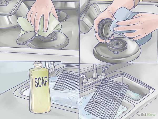 1. Чистим горелки. Снимаем верхнюю часть горелки и моем её губкой в теплой воде или же просто кладём её в посудомоечную машину.