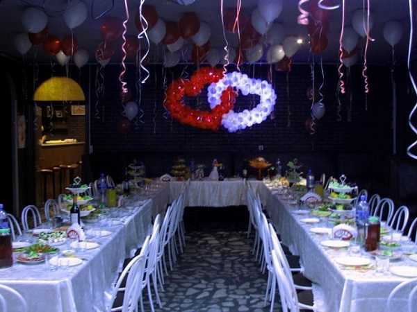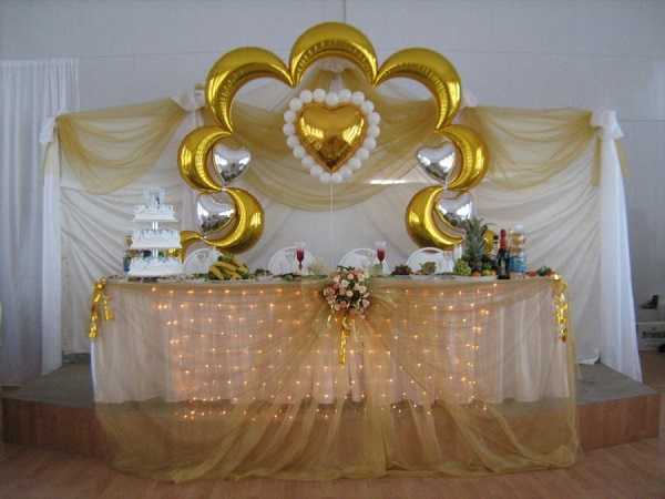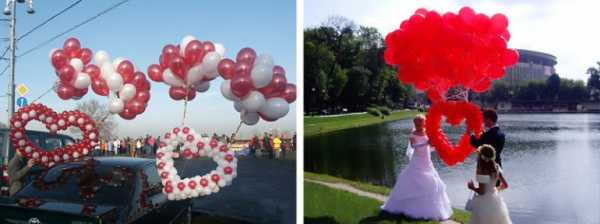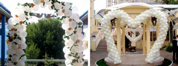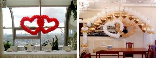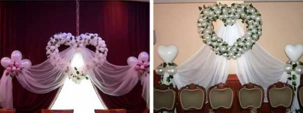 Сердце может быть и одно на двоих, но в этом случае можно добавить другие элементы из шаров и драпировку из воздушной ткани.