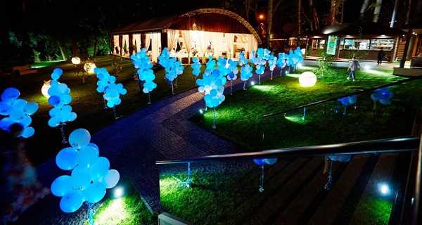Чтобы светящиеся шары выглядели более выигрышно, общее освещение необходимо приглушить. Очень эффектны такие элементы на природе, после заката, а под самый конец праздника их можно отпустить в чёрное небо.