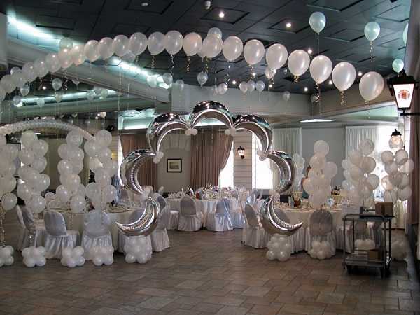 Из шаров можно делать буквы и цифры (если вдруг хочется увековечить дату торжества или инициалы влюбленных) . Вот тут подборка из 40 фото букв и цифр из разных материалов.