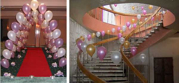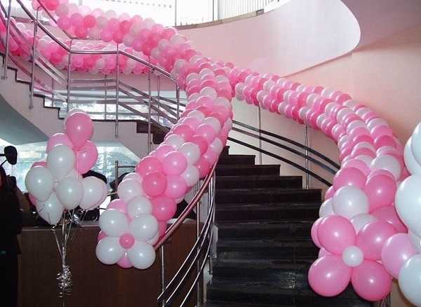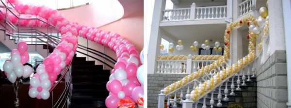 Эти гирлянды делаются из шаров без гелия, могут украшать помещение достаточно долго. Вот варианты для перил: