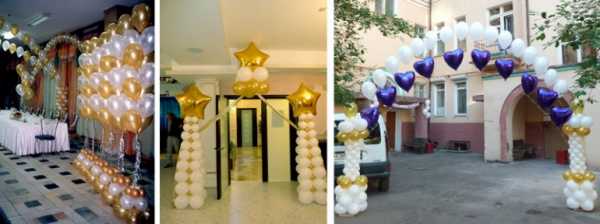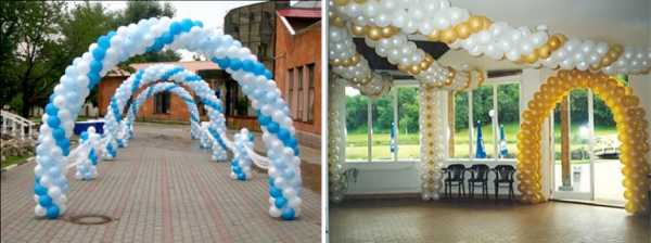 Гирлянды шаров являются основой для основных элементов оформления: арок, столбиков и колонн. Гирлянды из шаров отличаются периодичным рисунком, придают оформлению порядок и могут быть использованы в качестве самостоятельного и дополнительного элемента оформления. +