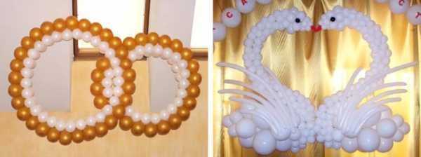 Обручальные кольца и лебеди из шаров тоже достаточно популярны. Цена зависит не только от размера, так как фигуры могут сильно отличаться по сложности исполнения. Вот примеры: