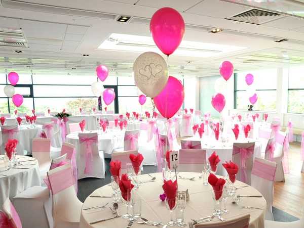 В зависимости от летучести стоит подбирать весь остальной дизайн. Например, обычные аксессуары красиво лягут гирляндами на столах, стенах или арке. Можно связать их небольшими букетами и закрепить в центре стола.