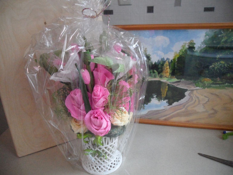 - Пленка обрамляла букет, а не заполняла его.