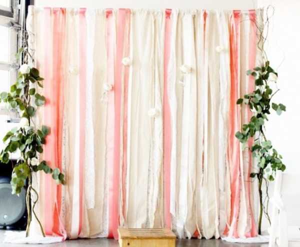 - Ленты Ленточные украшения особенно интересно смотрятся в совокупности с деревьями, и подходит аксессуар лишь при организации фотозон на открытом воздухе. В помещениях ленты смотрятся не очень уместно