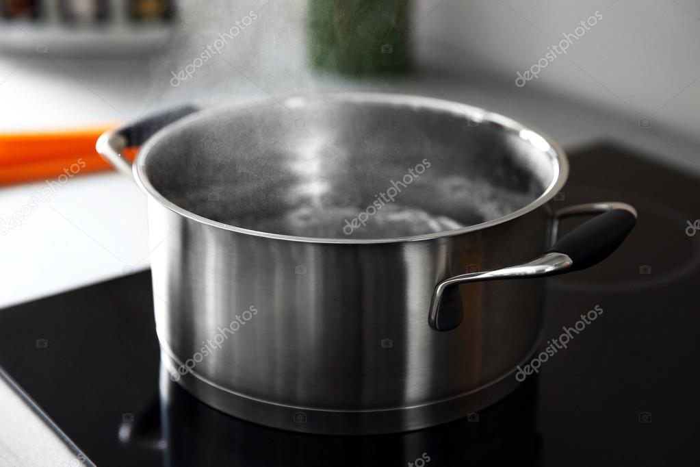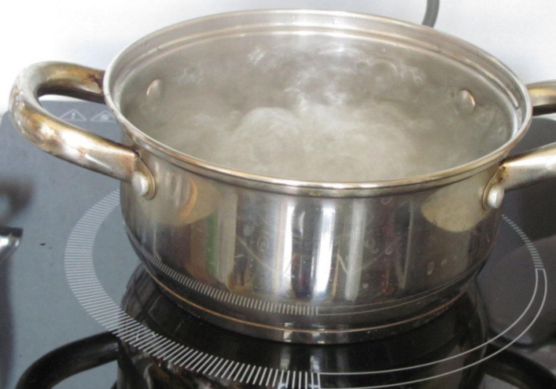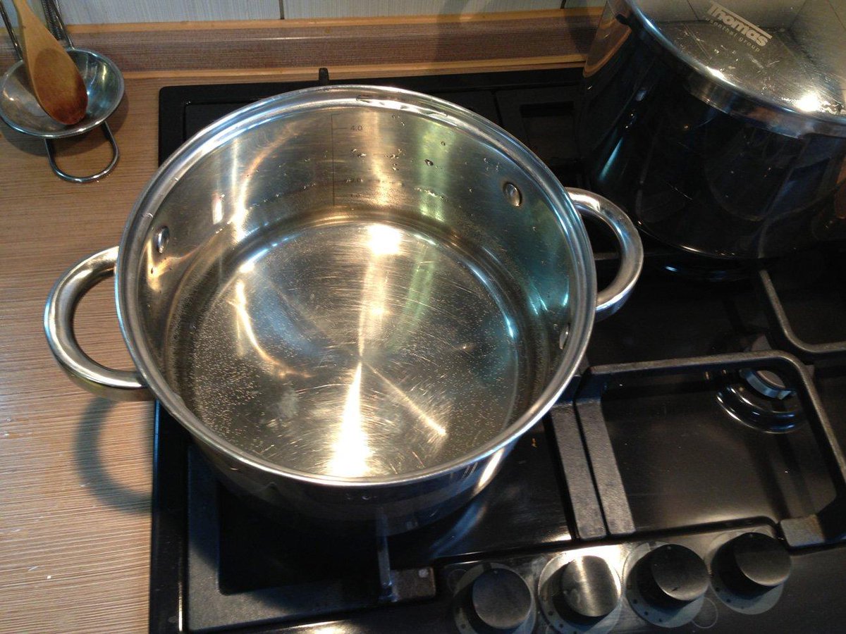 Кипячение кастрюль для очистки от пригоревшего варенья