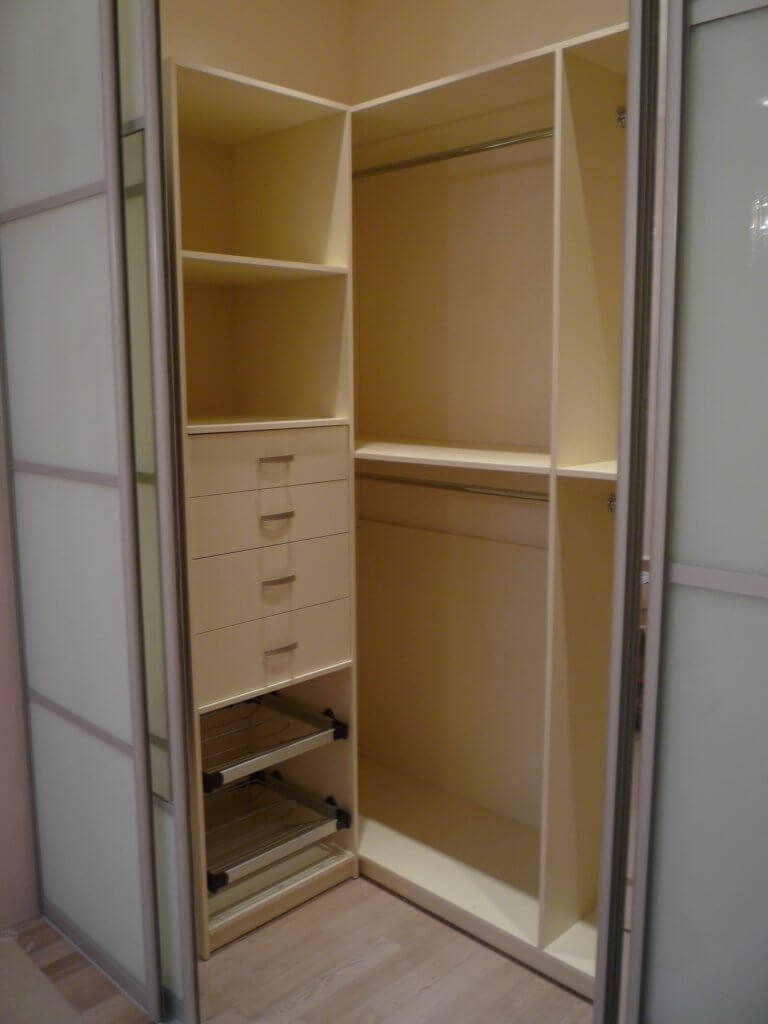 Угловая планировка предполагает соответствующий угловой шкаф.