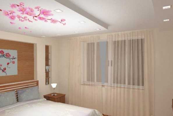- Вам не придется тратить много времени, на то, чтобы привести в порядок потолок в вашей спальне. С поклейкой обоев вполне можно справиться всего лишь за один день.