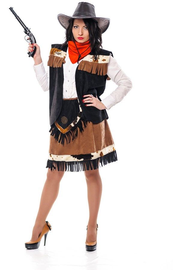 Подготовиться к ковбойской вечеринке совсем несложно! Войти в образ вам помогут джинсы, рубашка, жилетка, сапоги или ботинки на каблуках, ковбойская шляпа и шейный платок.