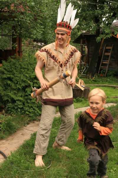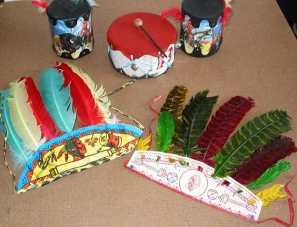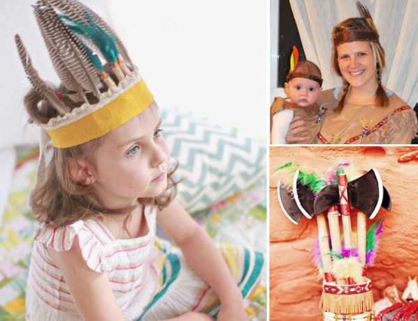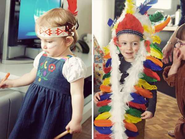 Для индийского костюма достаточно будет и повязки на голову из бумажных перьев. Не забудьте про томагавки из картона.