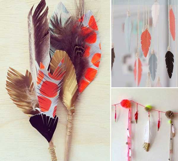 Для индейского колорита можно изготовить вигвамы, тотемы и украсить стены красивыми гирляндами из перьев. Перья могут быть не настоящими, а раскрашенными и вырезанными из бумаги.