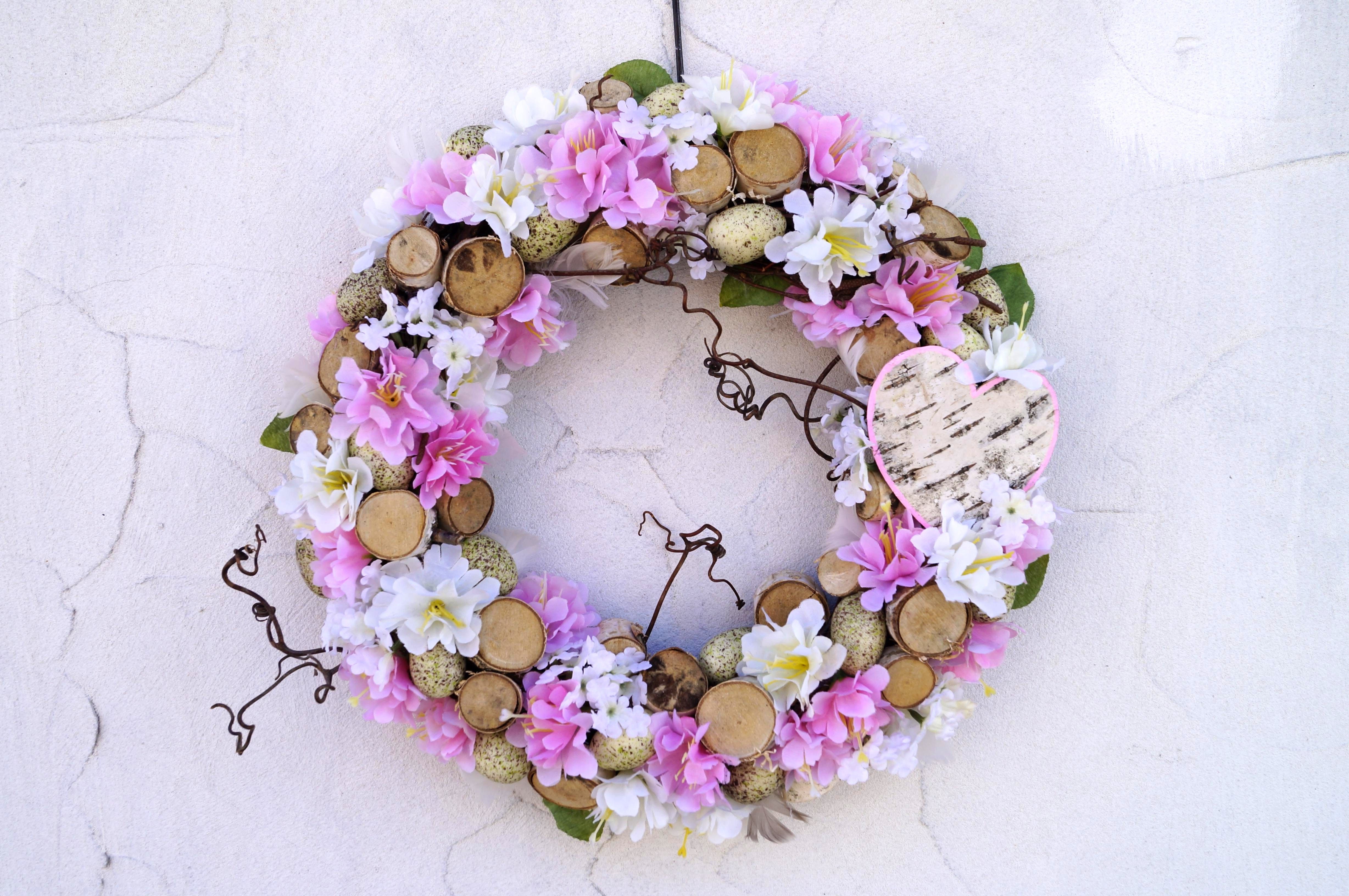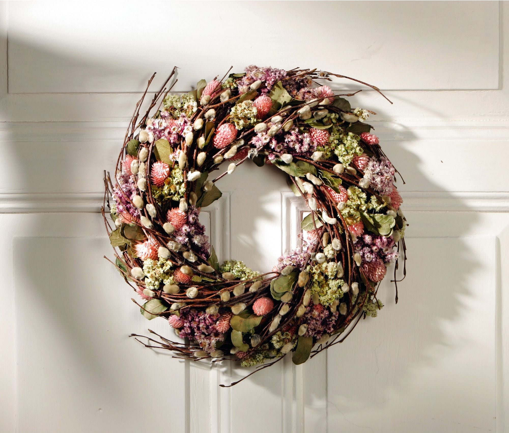 Неплохо в венках из натуральных веток смотрятся высушенные и живые цветы. Обычно такой декор актуален ко дню рождения и 8 марта.