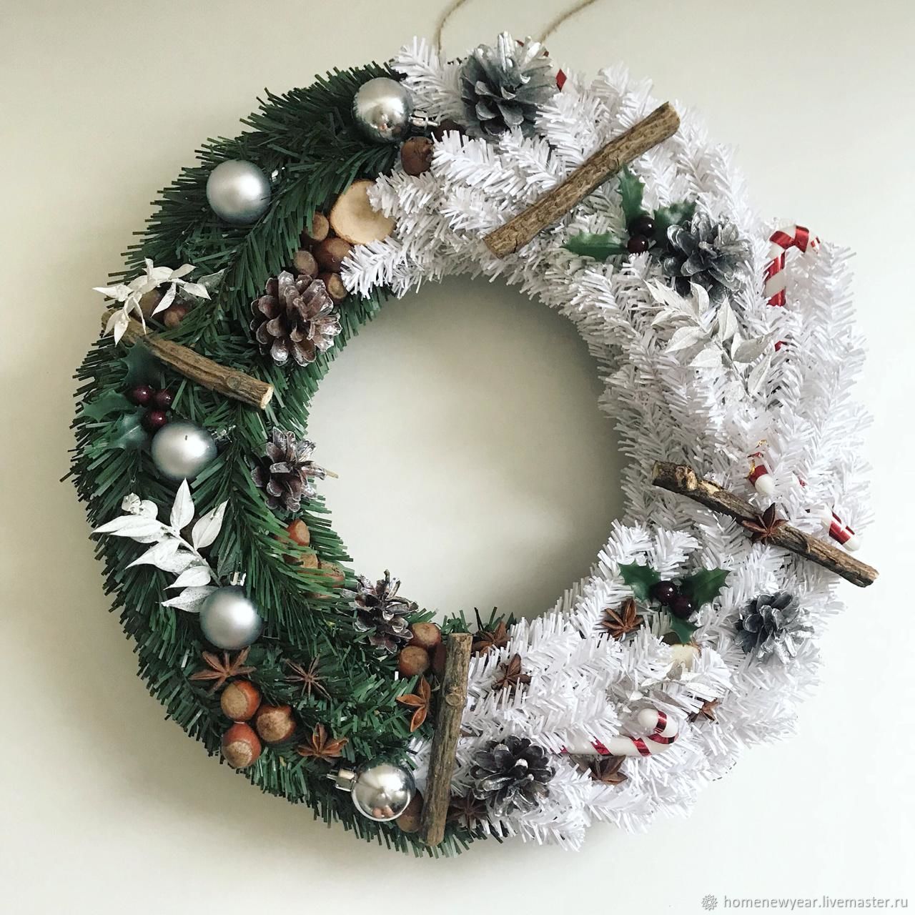 Новогодний венок, прикрепленный снаружи входной двери, приглашает в гости, лежащий на столе говорит о радушии хозяев, приветствующий прохожих из окна или витрины радует глаз и поднимает настроение.