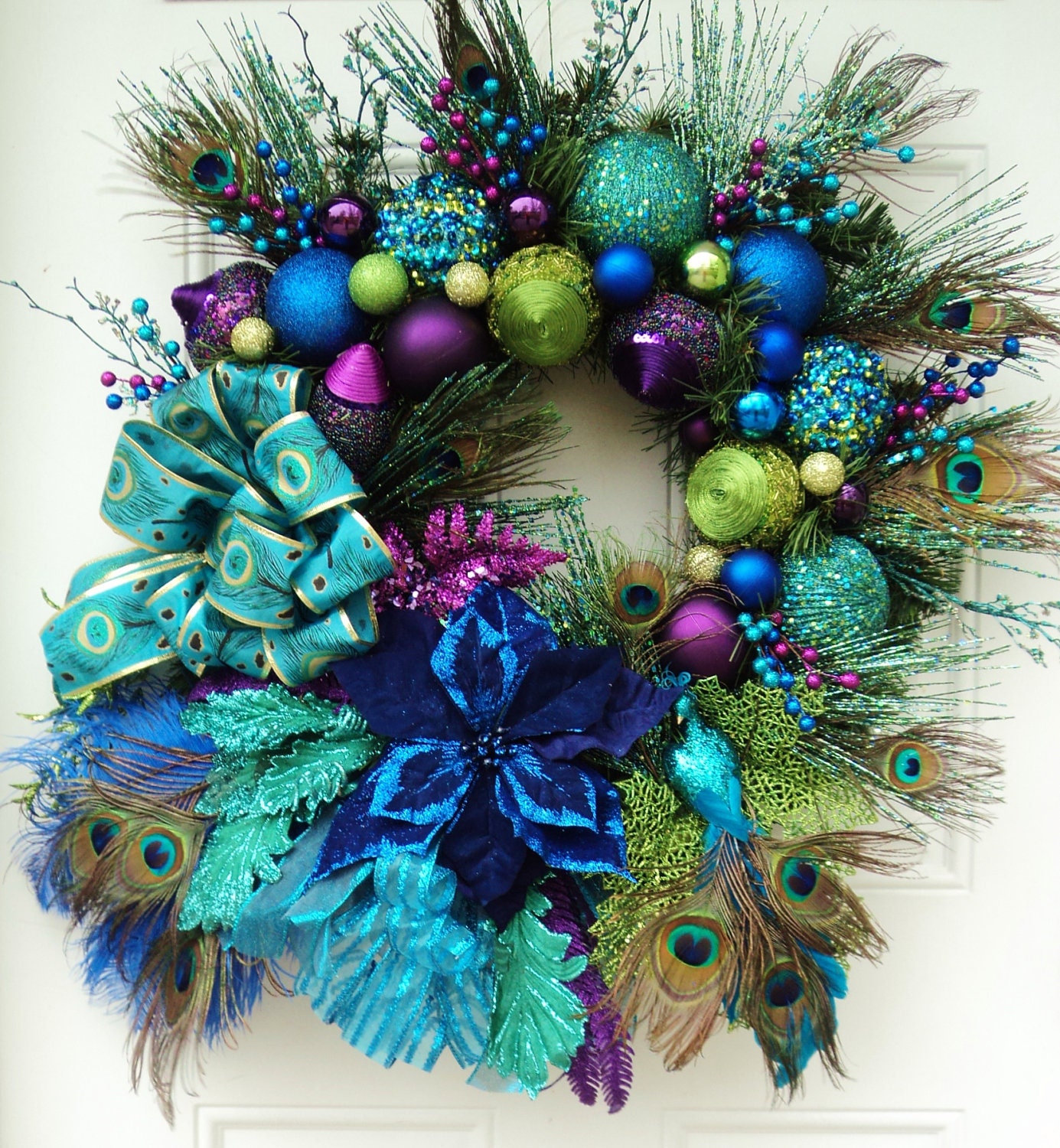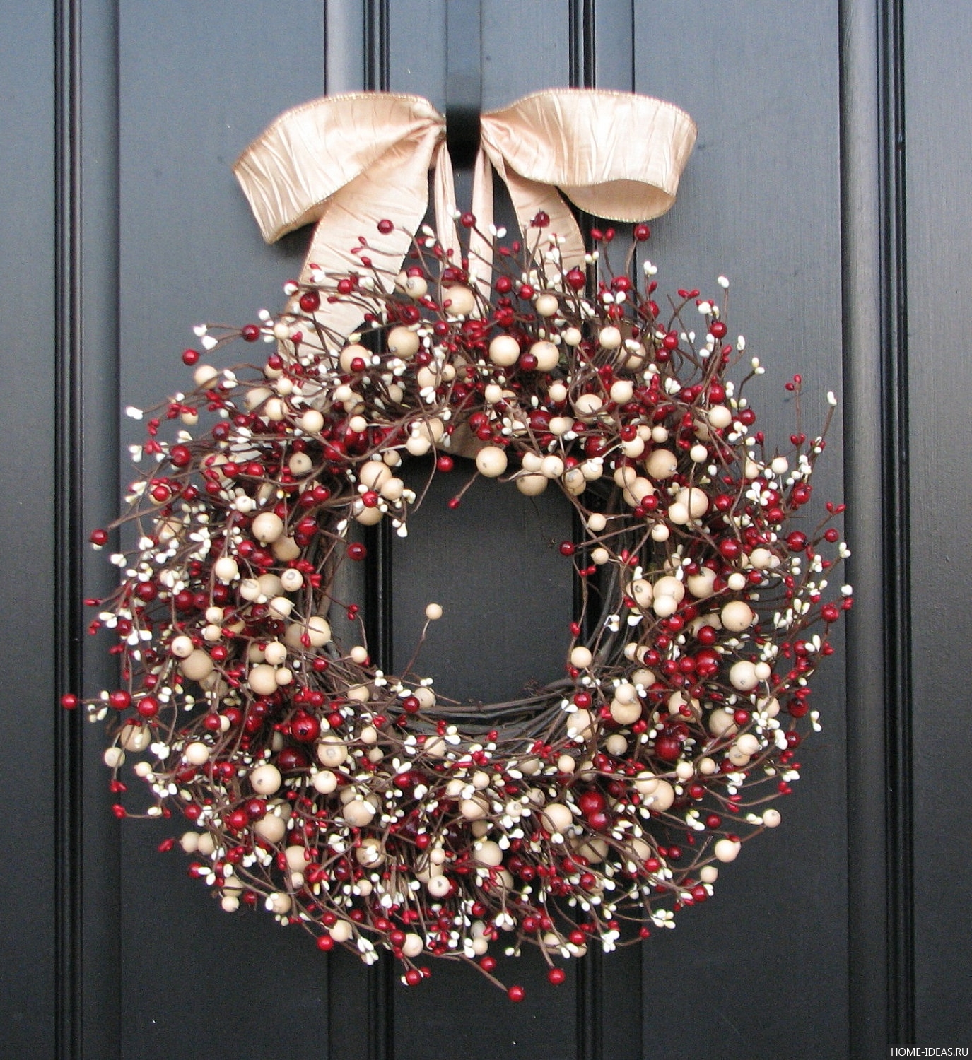 Не уступают по и новогодние венки в разноцветном исполнении, которые смотрятся очень ярко, празднично, по-домашнему.