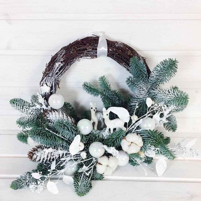 Комбинированные новогодние венки из хорошо гнущихся веток с тематическим декором