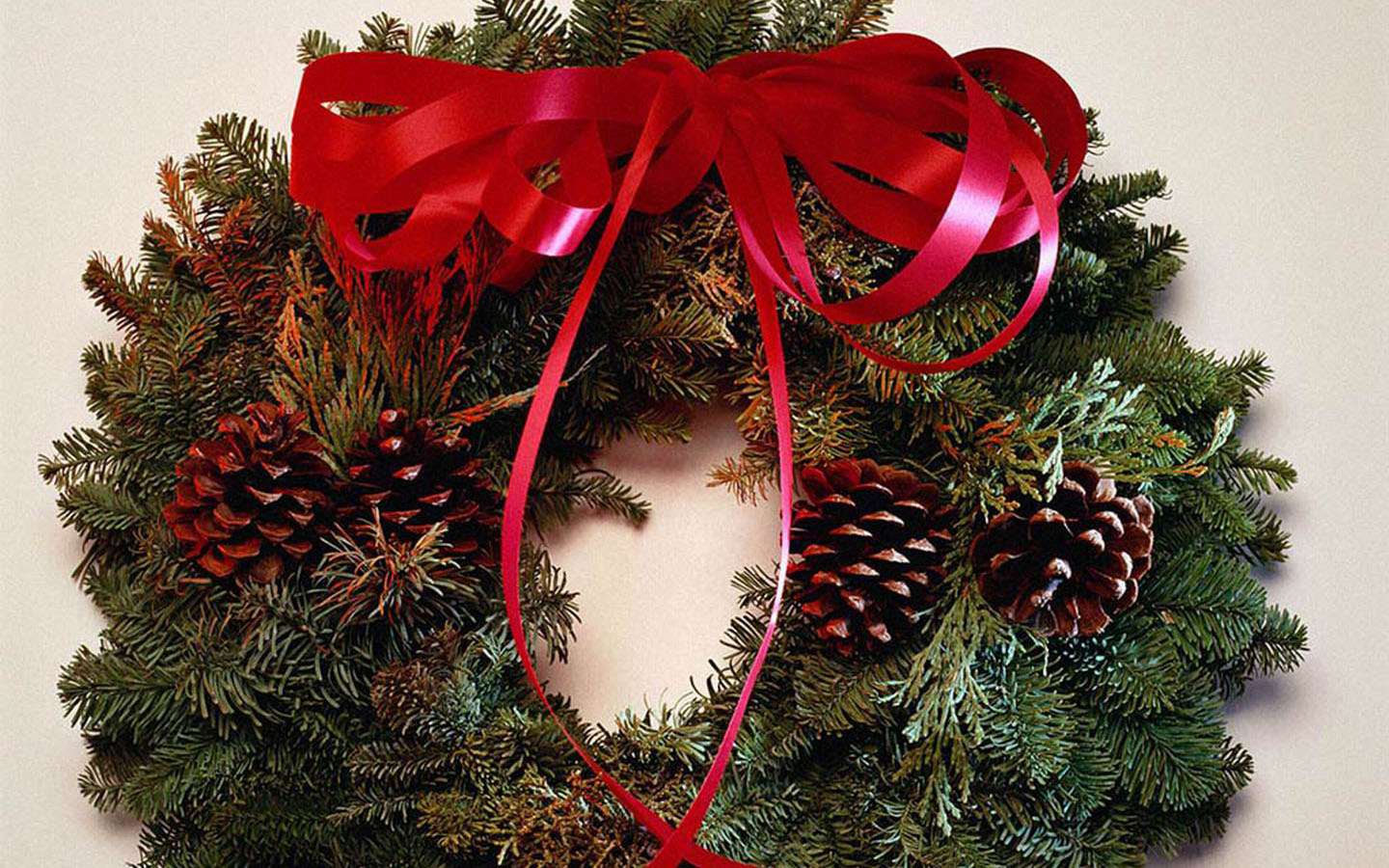Аккуратные, поблескивающие темной зеленью ветки ели, сосны, пихты, переплетенные красной или белой атласной лентой с прихотливо разбросанными по кругу шишками, вкраплением елочных шариков, мишуры.