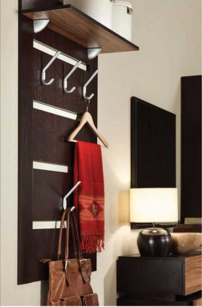 В большинстве случаев в прихожих устанавливаются настенные вешалки с полками. Над крючками для одежды располагается весьма удобная полка или решётка, которую используют для головных уборов, а подчас и шарфов, и других предметов одежды.
