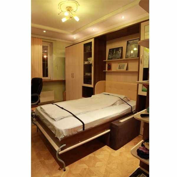 Сама же кровать бесшумно скрывается вместе с постельными принадлежностями.