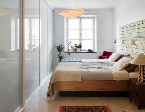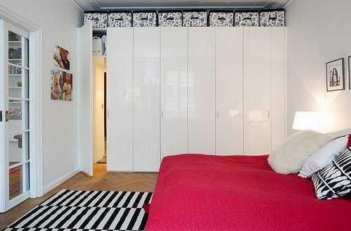 Вместо установки нескольких длинных шифоньеров можно отрезать кусок помещения и сделать гардеробную — сама комната при этом останется легкой и светлой.