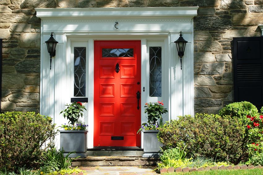 Moderne Haustür mit Fenstern für viel Licht und Einer…