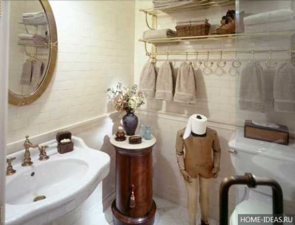 - для дополнительной экономии места запасные полотенца и банные халаты можно хранить вне ванной комнаты;