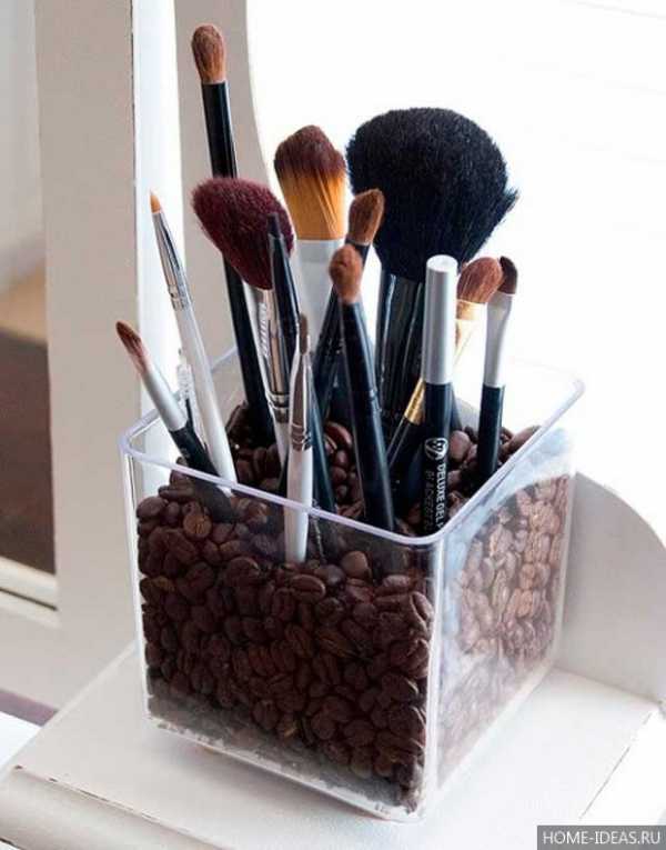 А кисти для макияжа найдут свой дом в стаканчике с песком или кофейными зернами. Теперь их будет куда проще поддерживать в чистоте.