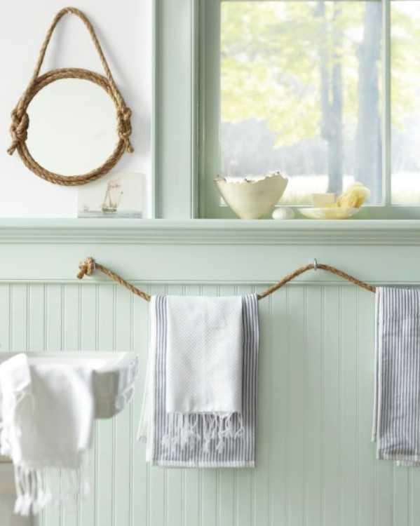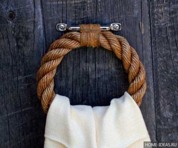 Морские узлы это стильно и оригинально. Они впишутся в любой интерьер и смогут сэкономить много места в маленьком помещении. Закрепите канатную верёвку под бортиками ванны, на стенах или же возле раковины. Тогда на них, как на перекладину или крючки можно будет развесить полотенца, вещи, контейнеры с мелкими предметами. Для гармоничности можно дополнительно украсить шкафчик или зеркало такими же верёвками и узлами.