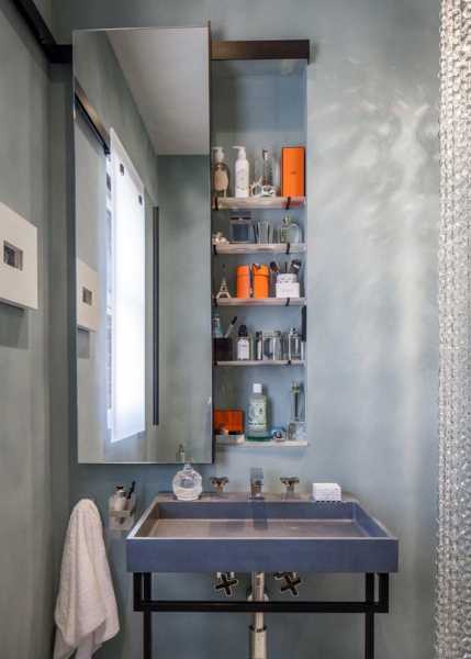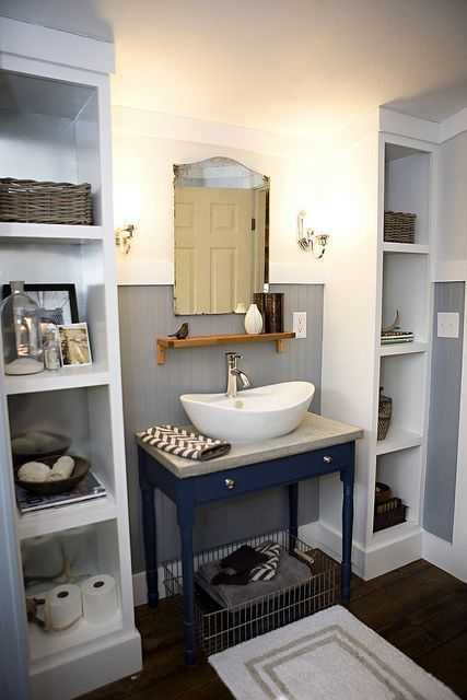 Shanty 2 ChicВ маленькой ванной нет смысла вешать простое зеркало, лучше смастерить за зеркалом шкаф. Пусть он будет неглубокий, но если его сделать во всю стену, там будет достаточно полок для хранения. Еще 12 секретов для тесной квартиры.