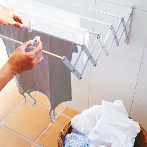 Не стоит думать, что сушилки для белья можно расположить только в просторном помещении. Они хорошо впишутся и принесут много пользы и в маленькой ванне. Главное, выбрать складывающиеся модели, подходящие по величине вашей комнате. Идеальный вариант в этом случае – сушилка-гармошка. При необходимости её можно разложить или убрать. К тому же, такая сушилка позволит сэкономить место не только в ванной, но и в других комнатах, например, в гостиной или спальне.